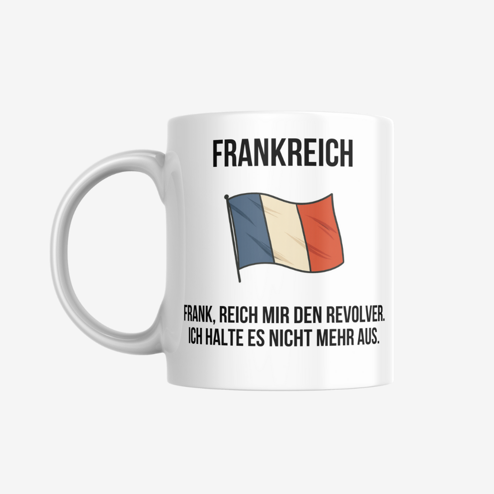 Für alle, die beim Gedanken an Urlaub eher an Flucht als an Erholung denken. Diese Tasse serviert dir internationale Verzweiflung mit schwarzem Humor – liberté, égalité, Nervenzusammenbruch