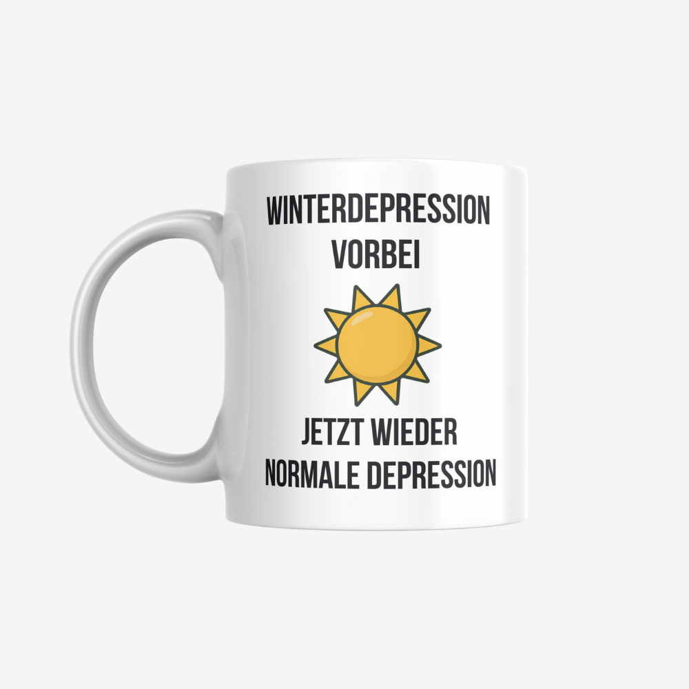 Die Jahreszeiten wechseln, der Zustand bleibt. Diese Tasse begleitet dich treu vom kalten Tief ins lauwarme Nichts – jetzt wieder ganz ohne Ausrede.